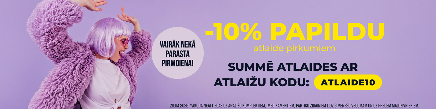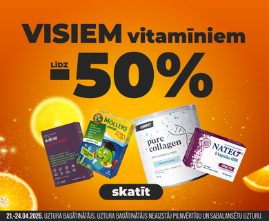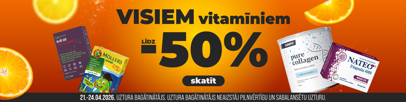 Vairāk nekā 1000 vitamīnu un uztura bagātinātāju dažādām vajadzībām — D un C vitamīni, B grupas vitamīnu kompleksi, omega-3 taukskābes, probiotikas un minerālvielas. Sortimentā pieejami gan Latvijā ražoti produkti, gan starptautiski atzīti zīmoli.