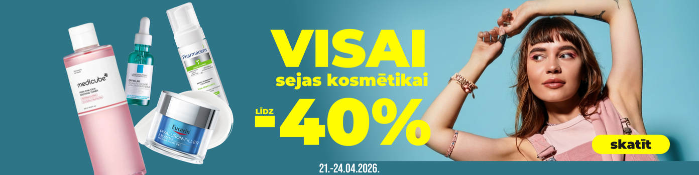 Vairāk nekā 4400 kosmētikas produktu sejas, ķermeņa un matu kopšanai. Sortimentā dermatologu ieteikti zīmoli — Bioderma, La Roche-Posay, Vichy, CeraVe, Avène — kā arī populāri Korejas kosmētikas līdzekļi.
