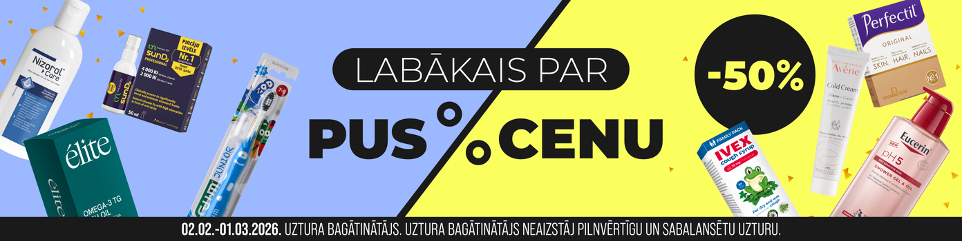 Vitamins and minerals, medicines, facial cosmetics, products for hair and body care and goods and products for pets. Affordable prices, big discounts and convenient delivery - shop at e-menesaptieka.lv!
