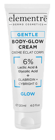 Body-Glow cream combines exfoliating acids with brightening actives for a gentle targeting of dull or rough skin.