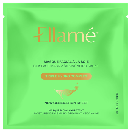 A sheet mask with hyaluronic acid, spirulina, olive and rice extracts can help to intensely hydrate and soothe the skin, as well as promote skin toning. Ellamé Triple Hydro Complex is an ideal choice for dehydrated facial skin regardless of age. Perfect for use after sunbathing, windy conditions, prolonged stay in heated or air-conditioned rooms. Long-fiber non-woven fabric with mulberry silk combined with a serum of a unique molecular formula will become the secret to radiant and youthful skin.