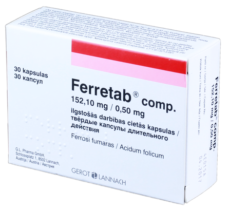 Ferretab comp. is suitable for maintaining and restoring normal levels of iron and folic acid in the blood when the body itself does not produce them enough.