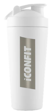 Premium stainless steel ICONFIT shakers made from high-quality steel with a matte, silky-smooth surface. Includes a metal mixing spring for better and more even blending. Along with an attractive design, it offers excellent functionality. The lid seals tightly to prevent leaks and is easy to open and close. Available in matte white.