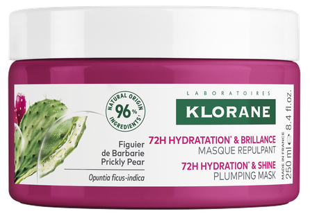 The Plumping mask with Prickly Pear restores hydration to the hair for 72H* and brings back shine to dehydrated and dull hair. Its formula, made with 96% natural origin ingredients, is enriched with Prickly Pear, known for its moisturizing properties superior to Glycerin**. Sensory and creamy, it moisturizes, plumps, and restores 2X more shine* to the hair. In less than 5 minutes, it transforms the hair into a dreamy, shiny, supple, and soft mane !