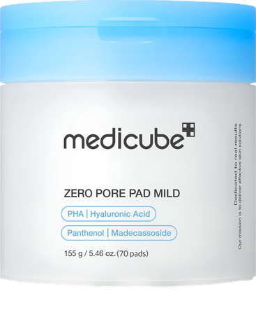 Medicube Zero Pore Pads Mild is crafted with gentle PHA for effective exfoliation and reduction in pore visibility. These pads have undergone multiple trials tailored to sensitive skin, aiming to discover the most optimal combination of ingredients. We've perfected our patented Pore Care Complex with a lighter formula to help your delicate skin remains calm and moisturized. Our dual-textured toner pads work wonders by gently exfoliating dead skin cells, regulating sebum production, and providing pore care. Tested to be low-irritating and enriched with skin-soothing ingredients, you'll experience minimum irritation for your ultra-sensitive skin.
