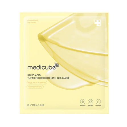 Medicube Kojic Acid Turmeric Brightening Gel Mask is designed to target freckles and blemishes hidden deep within the skin while enhancing overall radiance. Formulated with Kojic Acid and Turmeric that penetrates deep into the skin to target discoloration and uneven tones. The unique gel texture absorbs concentrated whitening ingredients, turning transparent as it works. With dual functionality for whitening and wrinkle improvement, this mask rejuvenates your skin from within, revealing a smoother, clearer, and more luminous complexion. Benefits: - Inhibits production of melanin and fades hyperpigmentation - Dual effects in whitening and wrinkle improvement - Deeply hydrating Key Ingredients: - Kojic Acid: Has anti-aging effect, helps reduce dark spots, sunspots, and uneven skin tone. - Turmeric: Anti-inflammatory, revitalizes dull skin and brightens.