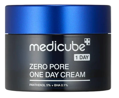 Medicube Zero Pore One Day Cream ir poras pilnveidojošs krēms, kas atjauno un pilnveido poras, lai tās izskatītos redzami mazākas. Ar patentētām poru kopšanas sastāvdaļām un tā 3D Pore Refining Pore Perfecting Technology, šis krēms savelk un paceļ ādu, uzlabojot poru dziļumu, poru apjomu, poru elastību un poru virsmas laukumu par vairāk nekā 50 %. Regulāri lietojot, āda izskatās gludāka un bez porām. Formula palīdz arī līdzsvarot sebuma izdalīšanos, vienlaikus mitrinot ādu bez lipīgas sajūtas.