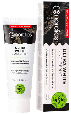 The toothpaste contains hydroxyapatite (""liquid enamel""), PVP (polyvinylpyrrolidone) and bromelain (pineapple enzyme).
