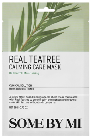 SOME BY MI Real Teatree Calming Care Mask is a vegan sheet mask specially formulated to soothe irritated, red, and acne-prone skin. Enriched with tea tree extract, which has strong anti-inflammatory and antibacterial properties, this mask helps balance skin, control excess oil, and promote healing.