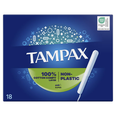 Tampax Super tampons with a cardboard applicator help you feel clean and confident. These are not plastic tampons and they do not contain fragrances. Tampax tampons have an absorbent core and a protective layer for extra protection. Their cardboard applicator has a non-slip surface for easier insertion, and the tampon base is made from a soft 100% cotton layer. Tampax Super tampons with a cardboard applicator are designed for days with moderate to heavy menstrual flow during your period. Tampax tampons are gynecologically tested. To ensure the tampons contain no harmful substances, they are tested using the Oeko-Tex testing system. Feel clean and confident. Try Tampax Pearl Compak — our best offer, providing the best comfort and protection in the Tampax product line. For more information about our products, visit our website.