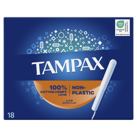 Tampax Super Plus tampons with a cardboard applicator help you feel clean and confident. These are not plastic tampons and they do not contain fragrances. Tampax tampons have an absorbent core and a protective layer for extra protection. Their cardboard applicator has a non-slip surface for easier insertion, and the tampon base is made from a soft 100% cotton layer. Tampax Super Plus tampons with a cardboard applicator are designed for days with heavy menstrual flow during your period. Tampax tampons are gynecologically tested. To ensure the tampons contain no harmful substances, they are tested using the Oeko-Tex testing system. Feel clean and confident. Try Tampax Pearl Compak — our best offer, providing the best comfort and protection in the Tampax product line. For more information about our products, visit our website.
