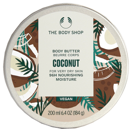 Our Coconut Body Butter is made with 96% ingredients of natural origin, designed to rescue very dry skin with its rich, non-greasy texture. Enriched with Community Fair Trade organic virgin coconut oil, it provides 96 hours of intense nourishment and leaves the skin with an alluring, tropical scent. It is dermatologically tested and certified by The Vegan Society. What Does It Do For You (Benefits & Features)Rescues very dry skin with 96-hour moisture. Enriched with virgin coconut oil. Leaves skin soft and tropical-scented.