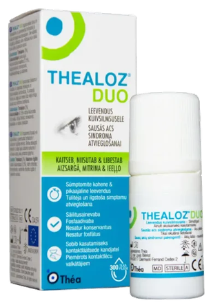 <p style="text-align:justify;">Jaunas paaudzes mitrinošie pilieni sausām, apsārtušām un nogurušām acīm. Thealoz Duo ne tikai mitrina, bet arī stabilizē un aizsargā šūnu membrānu. Drīkst lietot kontaktlēcu nēsāšanas laikā.</p>
