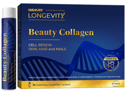 <p>"LONGEVITY Beauty Collagen Shots. Šūnu atjaunošanai.</p><p>Unikāla formula ādai, matiem un nagiem, kas satur 11 000 mg hidrolizēta kolagēna un 20 mg nedenaturēta II tipa kolagēna vienā flakonā. Produkts papildināts ar C, D un B6 vitamīniem, kā arī selēnu un mangānu.</p><p>Upeņu garša.</p><p>Tikai viens flakons dienā!"</p>