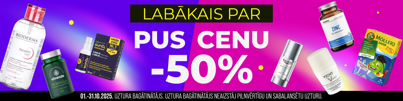 Vitamins and minerals, medicines, facial cosmetics, products for hair and body care and goods and products for pets. Affordable prices, big discounts and convenient delivery - shop at e-menesaptieka.lv!