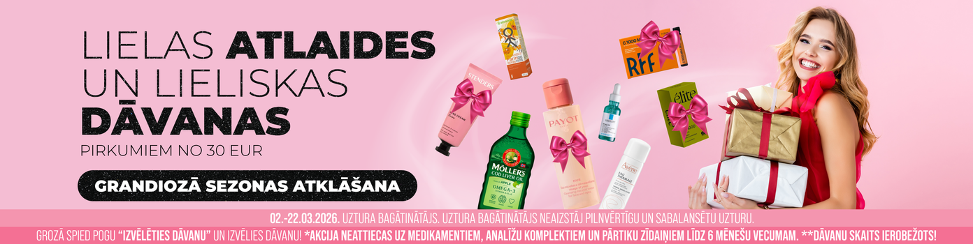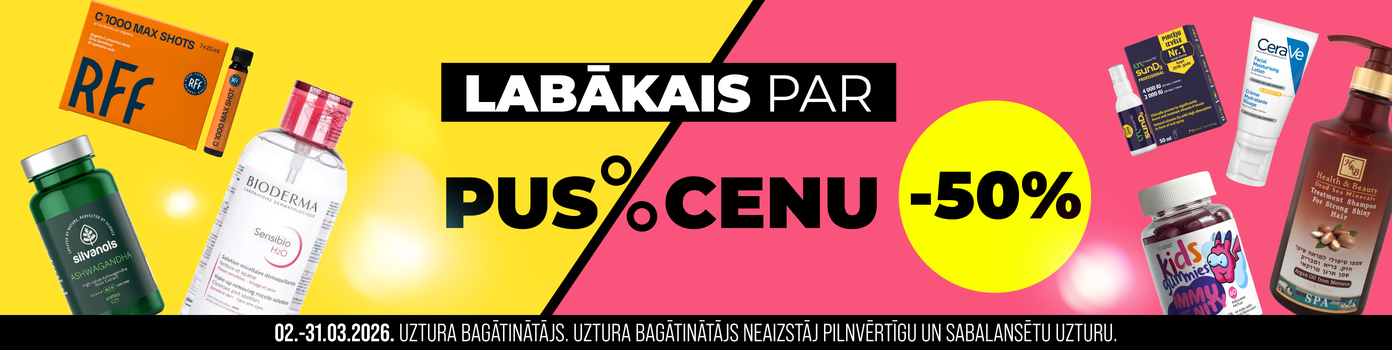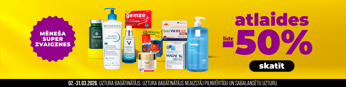 Vitamins and minerals, medicines, facial cosmetics, products for hair and body care and goods and products for pets. Affordable prices, big discounts and convenient delivery - shop at e-menesaptieka.lv!