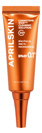 Aprilskin Carrotene IPMP Clearing Solution ir vegānisks lokālas iedarbības krēms, kas izstrādāts ar Carrotene IPMP, lai saudzīgi iedarbotos uz aknes skartajām zonām.