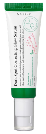 AXIS-Y Dark Spot Correcting Glow Serum ir vieglas tekstūras, ātri iesūcošs produkts, kas iedarbojas uz ādas krāsas izmaiņu un nevienmērīga ādas toņa galvenajiem cēloņiem. Tas izgaismo tumšos plankumus un aknes rētas, samazina apsārtumu, izlīdzina sejas toni un uzlabo kopējo ādas stāvokli, padarot ādu tīru un starojošu.