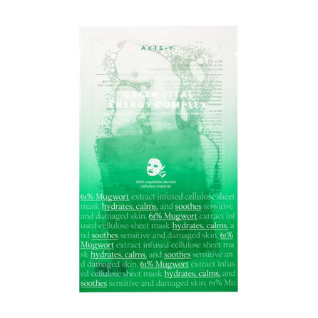 Iedvesmojoties no atsvaidzinošās “detox zaļās sulas”, AXIS-Y Mugwort Green Tea Vital Energy Complex auduma maska nomierina un mitrina jutīgu, kairinātu un aknei pakļautu ādu, stiprina dabisko aizsargbarjeru, atstājot ādu mitrinātu un svaigu. Formulā esošais japāņu vībotnes ekstrakts palīdz mazināt kairinājumu un atbalsta ādas dabisko dzīšanas procesu.