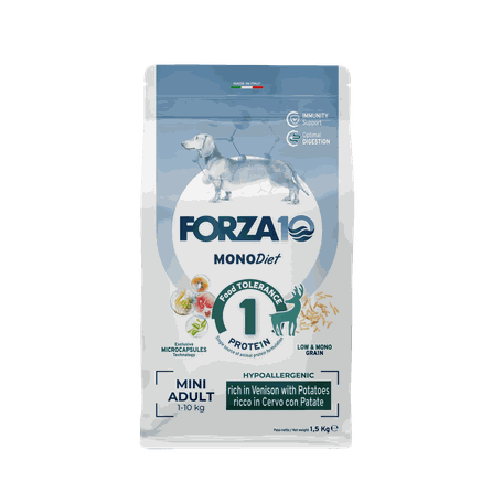 FORZA10 Monodiet Mini Adult Ar Briedi Un Kartupeļiem, Suņiem sausā barība, 1.5 kg