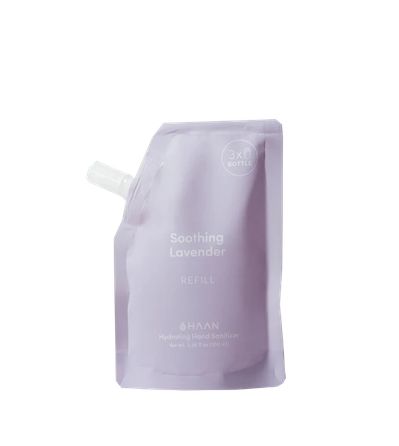 HAAN roku tīrītāja uzpilde Soothing Lavender ir 100ml uzpildes maisiņš, paredzēts HAAN Hand Cleanser Soothing Lavender 30ml pudelei. Formula ar 65% etanolu un alveju. Nomierinošs botāniskais lavandas aromāts.