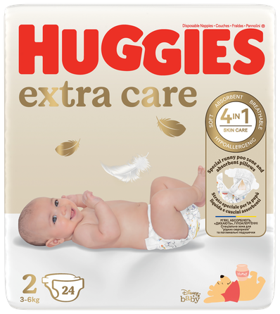 Jaunās, uzlabotās* Huggies® Extra Care autiņbiksītes - tās ir labi pazīstamo un iemīļoto, augstākās kvalitātes autiņbiksīšu Huggies® Elite Soft jaunā versija. Tās ir īpaši izstrādātas jaundzimušo bērnu ādai, kas ir 3 reizes plānāka un jutīgāka nekā pieaugušo āda. Huggies® Extra Care autiņbiksītes ir dermatologu apstiprinātas un hipoalerģiskas, tās ir piemērotas ādai ar noslieci uz kairinājumu.