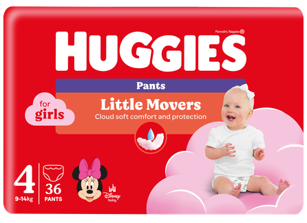 Huggies autiņbiksītes ar mākoņmīksto, elastīgo jostu ir kļuvušas vēl ērtākas aktīviem mazuļiem