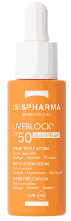 Uveblock Sun Serum ir dermatoloģisks saules kopšanas līdzeklis, kas apvieno ļoti augstu aizsardzību ar ādas kopšanu, pateicoties trīskāršas iedarbības formulai: