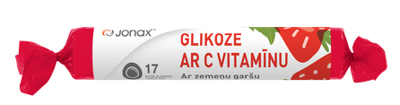 JONAX Glikoze Ar C Vitamīnu (Zemeņu) košļājamās tabletes, 17 gab.