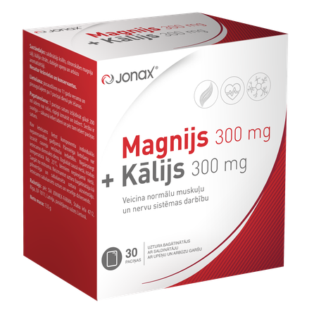 Magnijs 300 mg + Kālijs 300 mg ir pulveris dzeramā šķīduma pagatavošanai. Magnijs un kālijs pilda vairākas svarīgas funkcijas cilvēka organismā.