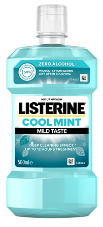 LISTERINE® COOL MINT MILD TASTE ar ēteriskajām eļļām, nesatur alkoholu. Lietojot divreiz dienā, uzlabo mutes dobuma higiēnu.