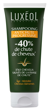 Luxéol Anti Progressive Hair Loss Shampoo šampūns ar patīkamu tekstūru samazina matu izkrišanu par 40 % un palīdz atjaunot stiprākus, veselīgākus matus. Tas veido krēmīgas putas un tam ir maigs, patīkams aromāts. * Klīnisks pētījums ar 57 brīvprātīgajiem ar progresējošu matu izkrišanu; vidēji lietots 3 reizes nedēļā 3 mēnešu garumā.