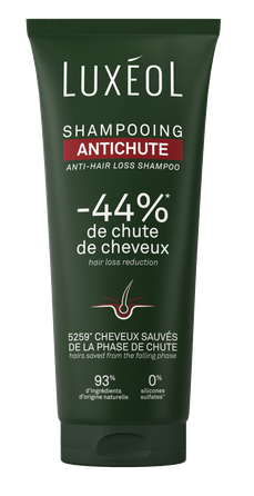 Luxéol Anti Hair Loss Shampoo šampūns ar krēmīgo tekstūru samazina matu izkrišanu par 44 %*. Tas stiprina matus, padarot tos mazāk trauslus un izturīgākus, vienlaikus piešķirot tiem lielāku apjomu un spīdumu – matiem, kas izskatās atjaunoti. * Klīnisks pētījums ar 65 cilvēkiem, vidēji lietots 3 reizes nedēļā 3 mēnešu garumā.