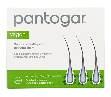 Pantogar® vegan uztura bagātinātājs apgādā matu saknes ar dažādām uzturvielām, kas ir svarīgas matu augšanai un cīņai pret matu izkrišanu. Kapsulas satur veselu virkni matiem noderīgu sastāvdaļu, piemēram, biotīnu, cinku, B grupas vitamīnus un cistīnu. Produkta unikālā sastāvdaļa ir raugs, kam raksturīga B vitamīnu, noderīgu aminoskābju un mikroelementu pārpilnība. Pantogar® vegan formula ir piemērota vegāniskam uzturam, sastāvs ir papildināts ar dzelzs un rīsu proteīnu. Klīniski apstiprināta efektivitāte.