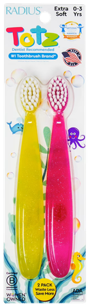 „Radius Totz“ laba izvēle bērnu zobu aizsardzībai un pareizas zobu tīrīšanas iemaņu attīstīšanai. Iepakojumā 2 vienības.