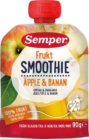 Augļu smūtijs ar āboliem un banānu. Iepakots aizsargatmosfērā.