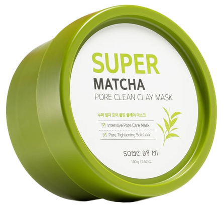 SOME BY MI Super Matcha Pore Clean Clay Mask ir māla maska, kas absorbē lieko eļļu un citus piemaisījumus. Tā satur Centella Asiatica ekstraktu, tējas koka lapu ūdeni, Houttuynia Cordata pulveri un Chamaecyparis Obtusa lapu ekstraktu, kas nomierina ādu, noņem lieko eļļu un nodrošina ādu ar mitrumu.