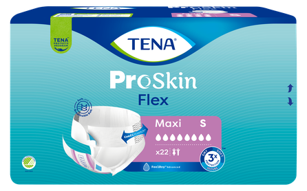 TENA ProSkin Flex Maxi S (paredzēts lietotājam ar gurnu apkārtmēru no 61 cm līdz 87 cm) ir elastīgas jostbikses urīna nesaturēšanas gadījumiem, kas izstrādātas, lai tās būtu vieglāk un ergonomiskāk nomaināmas. Tās ir piemērotas cilvēkiem, kas pārvietojas, ir mazkustīgi vai guloši. TENA ProSkin Flex ar FeelDry Advanced™ slāni nodrošina izcilu aizsardzību, ātri aizvadot šķidrumu prom no virskārtas un saglabājot ādu sausu. Īpaši ātri uzsūcošais slānis momentāni uzsūc pat lielu daudzumu urīna, efektīvi novada to produkta dzīļakajos slāņos, nodrošinot sausuma sajūtu. Pilnīgi elpojošs ConfioAir™ ārējais slānis ļauj ādai brīvi elpot. Visas šīs priekšrocības saudzē ādu. ComfiStretch™ josta nodrošina pielāgošanas iespējas vēl lielākam komfortam un labākai aizsardzībai. Lai jostbikses būtu vieglāk izmantojamas, jostai ir viegli fiksējami klipši, kurus var droši piefiksēt, pielāgojot izstrādājumu auguma aprisēm. TENA ProSkin Flex ir pieejamas dažādos izmēros un uzsūkšanas pakāpēs.