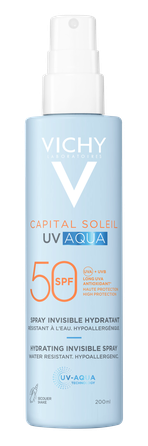 Uzlabota aizsardzība pret UVB un UVA starojumu. Ekskluzīvā UV-AQUA tehnoloģija piešķir viegluma un svaiguma sajūtu. 24 stundas ilga mitrināšana.¹ Bagātināta ar beta karotīnu, kas veicina antioksidatīvu un aizsargājošu iedarbību. Pārbaudīts dermatoloģiskas un oftalmoloģiskas kontroles apstākļos. Enerģiski sakratiet un uzklājiet produktu tieši pirms uzturēšanās saulē, lai nodrošinātu optimālu aizsardzību. Vienmērīgi uzklājiet uz ķermeņa ādas un iemasējiet apļveida kustībām. Lietojiet bagātīgi un regulāri atjaunojiet, lai saglabātu pietiekamu aizsardzības līmeni, īpaši pēc peldes, dvieļa izmantošanas vai intensīvas svīšanas. Nesmidziniet tieši uz sejas. Izsmidziniet līdzekli uz plaukstām un pēc tam uzklājiet uz sejas. Nepieļaujiet tiešu saskari ar acīm. Ja līdzeklis ir nokļuvis acīs, nekavējoties izskalojiet tās ar ūdeni. Nepietiekams produkta daudzums mazina aizsardzības līmeni. Ilgstoša atrašanās saulē var būt bīstama. Neuzturieties saulē pārāk ilgi pat pēc aizsarglīdzekļa lietošanas. Aizsarglīdzeklis nenodrošina 100% aizsardzību pret saules iedarbību. Sargājiet zīdaiņus un mazus bērnus no tiešiem saulesstariem. Lai aizsargātos, bērniem jālieto cepure, T-krekls un saulesbrilles. Nepieļaujiet saskari ar audumiem. ¹ Instrumentālais tests.