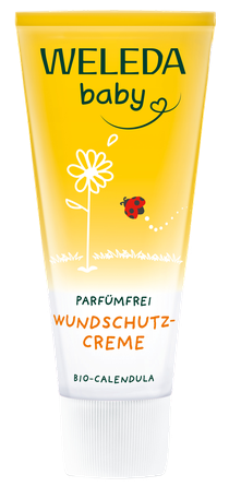 Pieticīgajai kliņģerītei piemīt nepārspējamas īpašības, ko izmantojam savos kliņģerīšu produktos bērnu ādas kopšanai. Šis augs ir dabisks pretiekaisuma līdzeklis, tādēļ Weleda krēmā autiņu zonai esam apvienojuši kliņģerīšu un kumelīšu ekstraktus ar mandeļu un sezama eļļām, radot bagātīgu līdzekli, kas mazina apsārtumu un maigi rūpējas par autiņu zonu. Ādai draudzīgais lanolīns un cinka oksīds rada aizsargslāni, kas pasargā no mitruma. Vecmātes apstiprina, ka jau gandrīz 30 gadus mēs piedāvājam izcilu produktu!