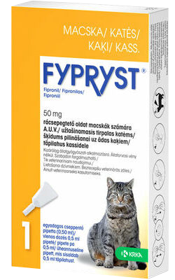 <p>Blusu (Ctenocephalides felis) un ērču (Rhipicephalus sugas, Dermacentor sugas, Ixodes sugas) invāzijas ārstēšana un profilakse kaķiem.</p><p>Alerģijas pret blusu kodumiem ārstēšana un kontrole kaķiem (blusu kodumu alerģijas).</p><p>Utu (Fenicola subrostratum) invāzijas profilakse un ārstēšana kaķiem.</p> <a href="https://registri.pvd.gov.lv/vz/dati?o_n=fypryst+50&r_n=06">Veterināro zāļu reģistrs</a>