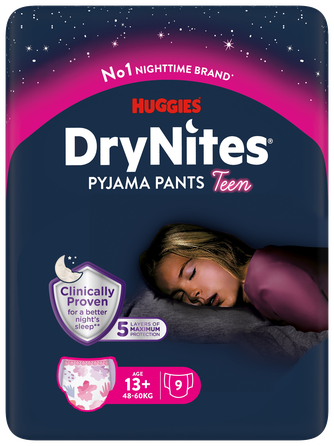 Ночные трусики DryNites® – это впитывающие подгузники-трусики для мальчиков и девочек от 13 лет и старше. Они специально разработаны для детей, у которых случаются эпизоды недержания.