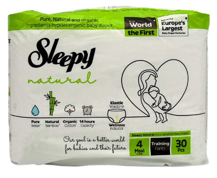 Подгузники Sleepy Natural — идеальное решение для вашего малыша. Эти детские подгузники-трусики сочетают в себе комфорт и безопасность. Они плотно облегают тело, поэтому для более крупных детей может потребоваться больший размер. Подгузники изготовлены из натуральных бамбуковых волокон и органического хлопка, что делает их экологичними и гипоаллергенными. Высокий пояс и закрытые края предотвращают протекание. Влагостойкость — 15 часов.
