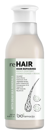 reHAIR — специально разработанный восстанавливающий кондиционер для волос, обеспечивающий здоровье, блеск и защиту от неблагоприятного воздействия внешней среды. Волосы легко расчесываются, не создают ощущения тяжести.