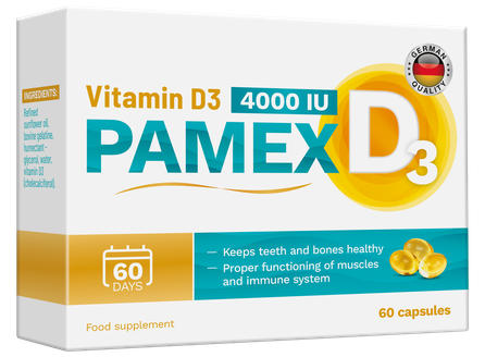 VITAMIN D3 Pamex 4000 IU kapsulas, 60 gab.