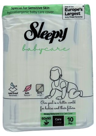 SLEEPY Natural 90x60 cm впитывающие простыни, 10 шт.